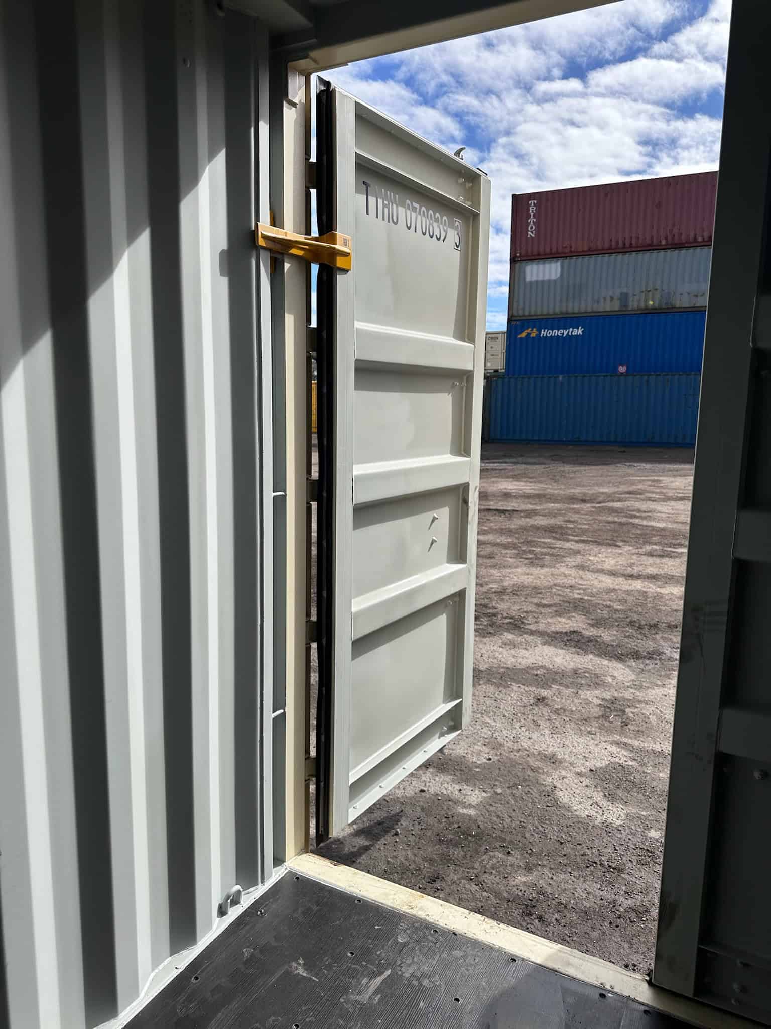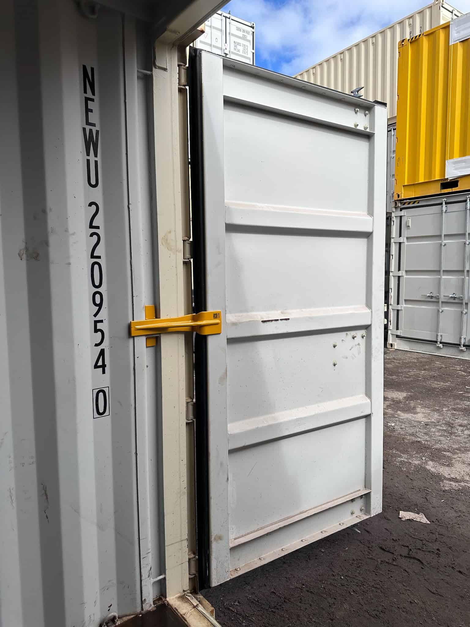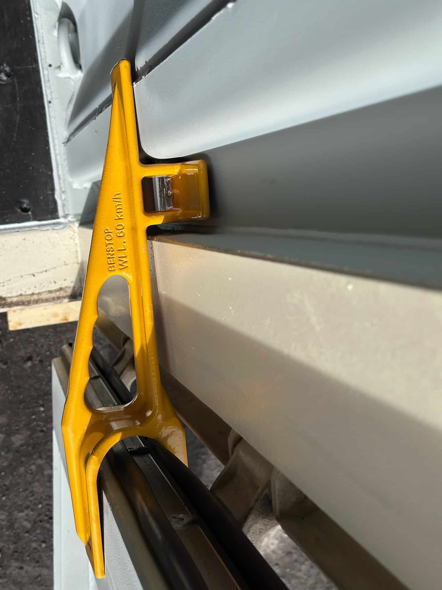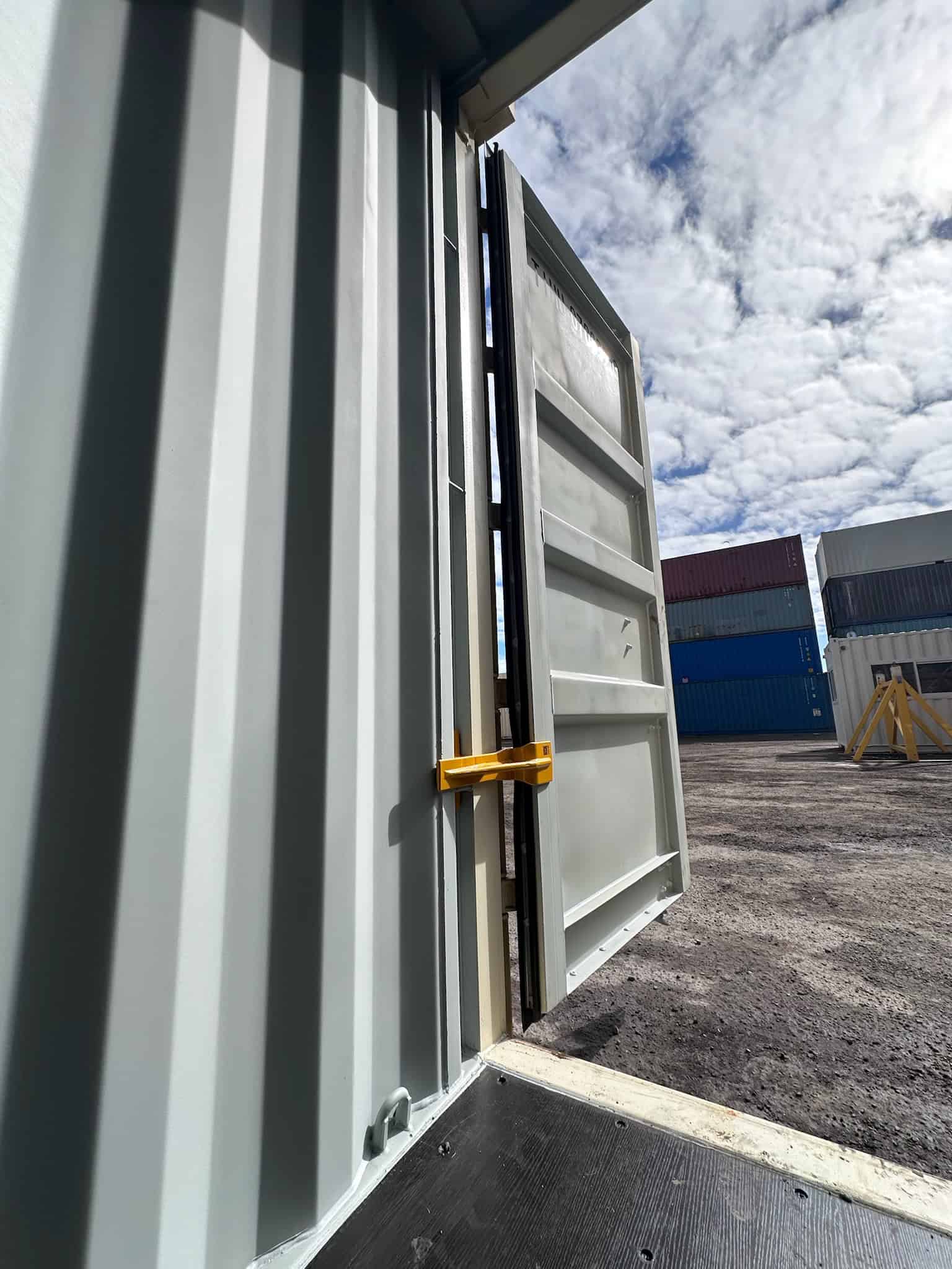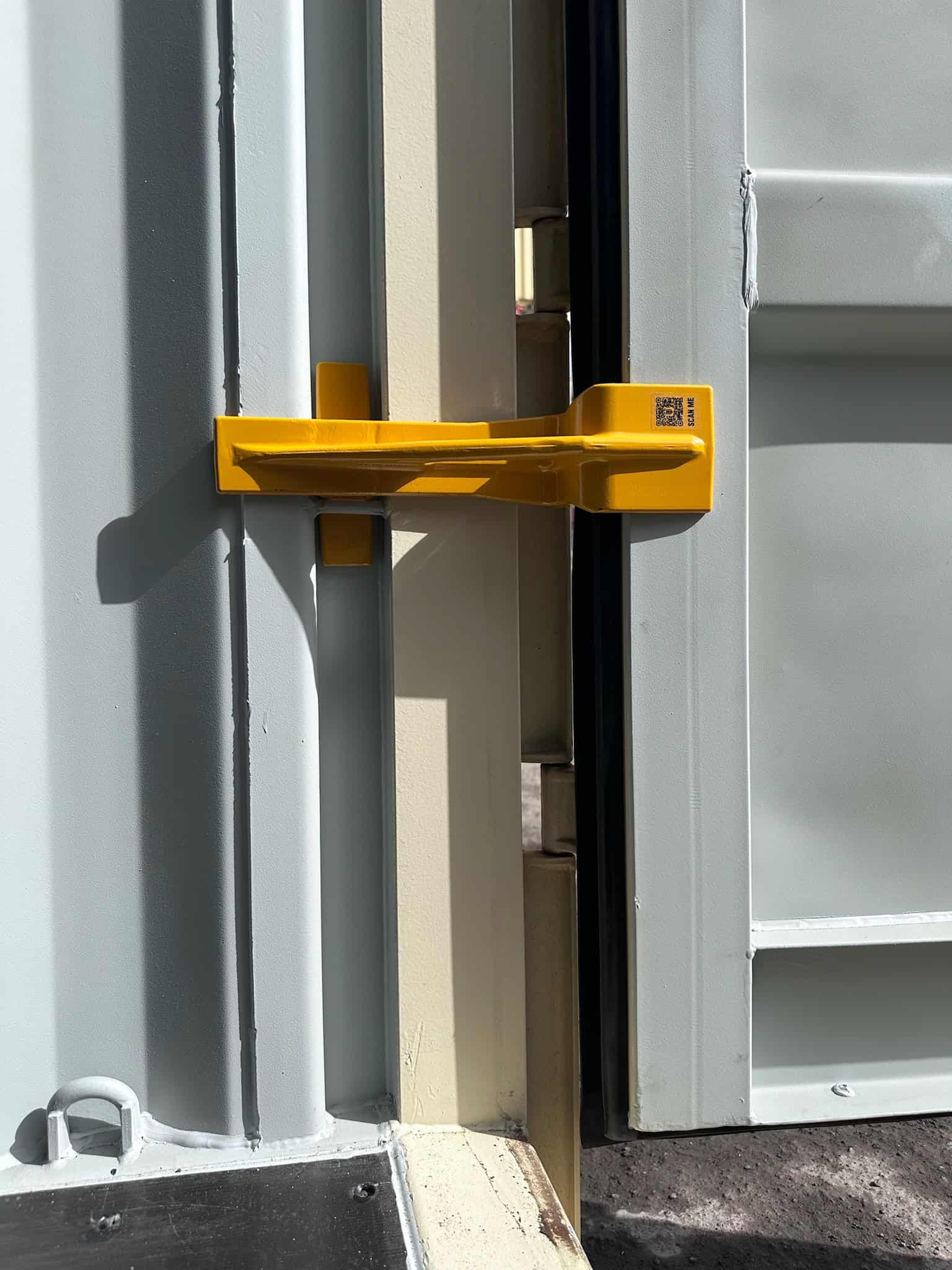 The GP 20/40 Door Brace is a powder coated aluminium brace suitable for ISO general purpose 20 and 40 foot shipping containers. When in place, the brace fixes a single container door in a static 90° angle open position, preventing the door from moving inwards and outwards.